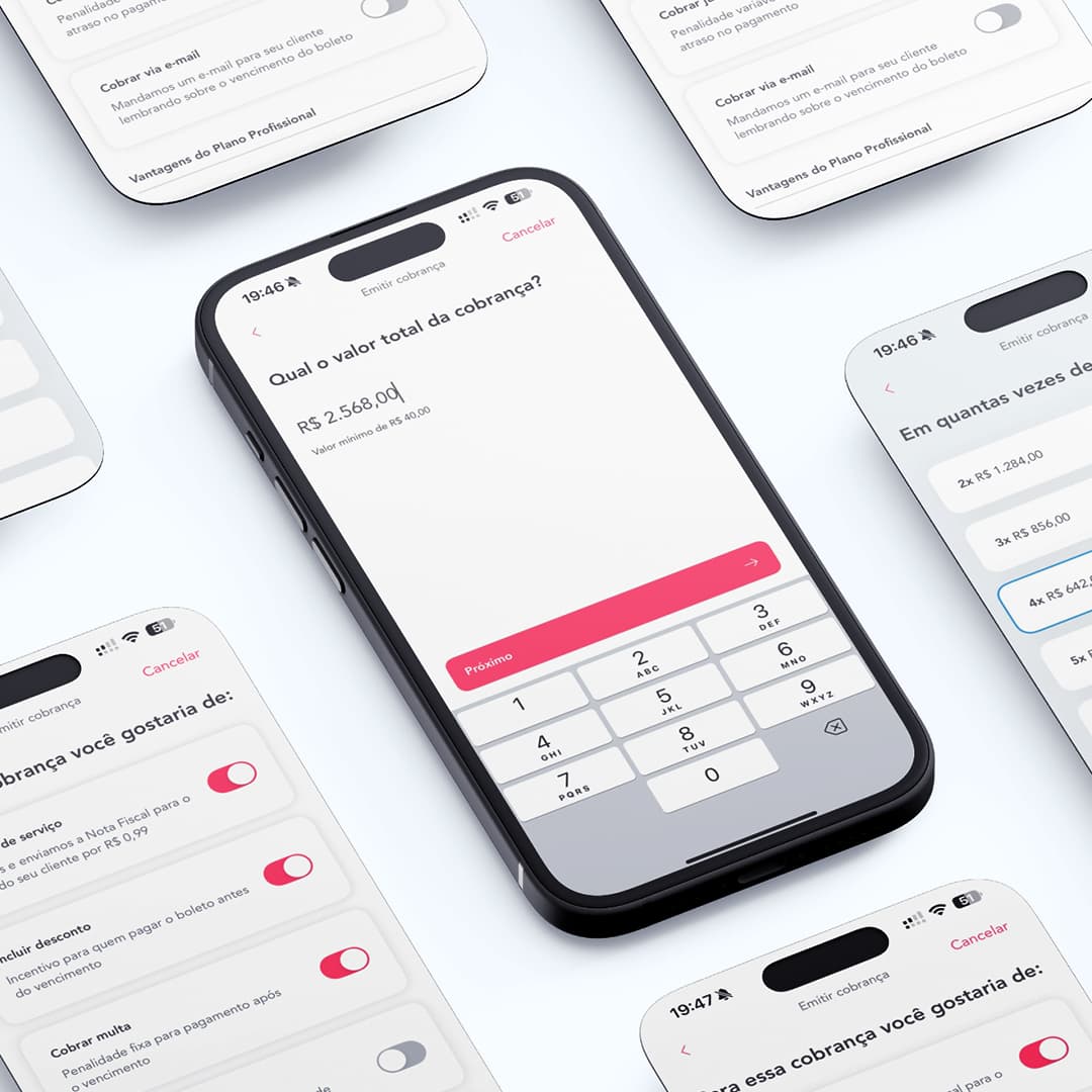 - Emita sua cobrança via Boleto, Pix ou Link de Pagamento